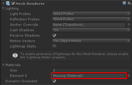 생성된 게임오브젝트의 머티리얼도 언로드 되어서 보라색으로 표시됩니다.