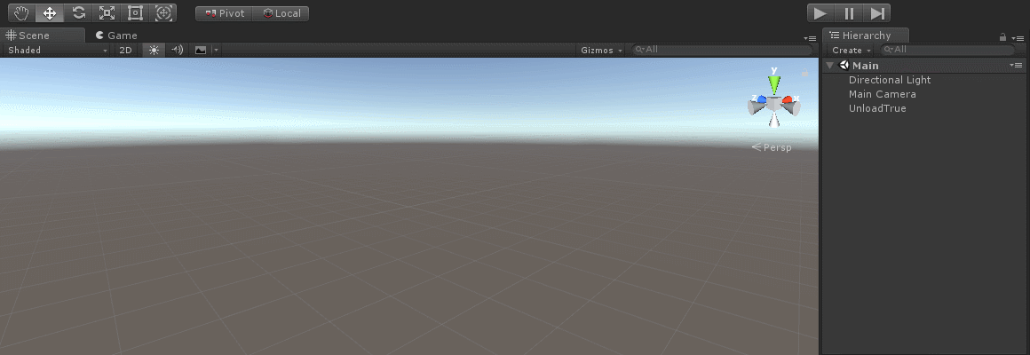 UnloadTrue 스크립트를 빈 게임오브젝트에 추가 후 게임을 플레이합니다.