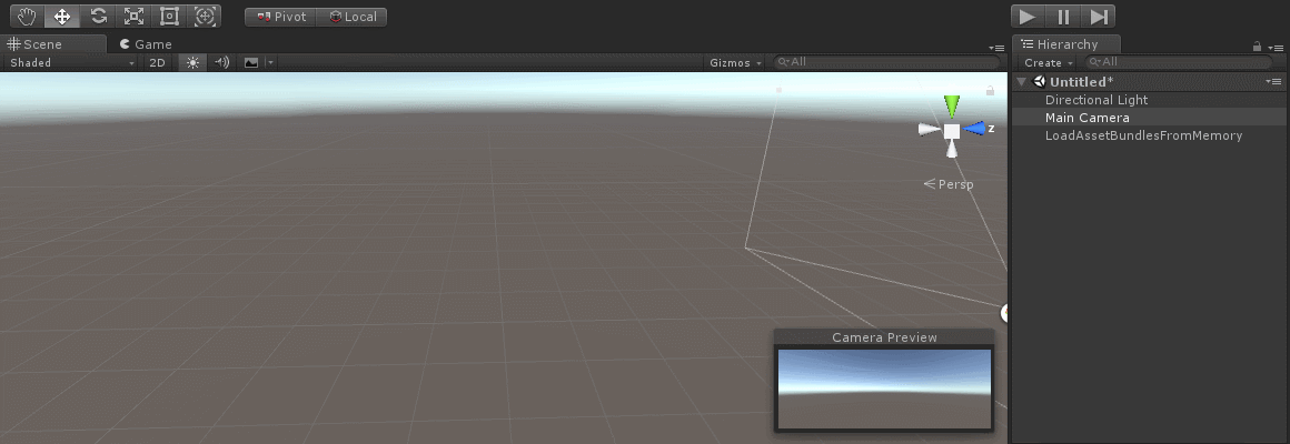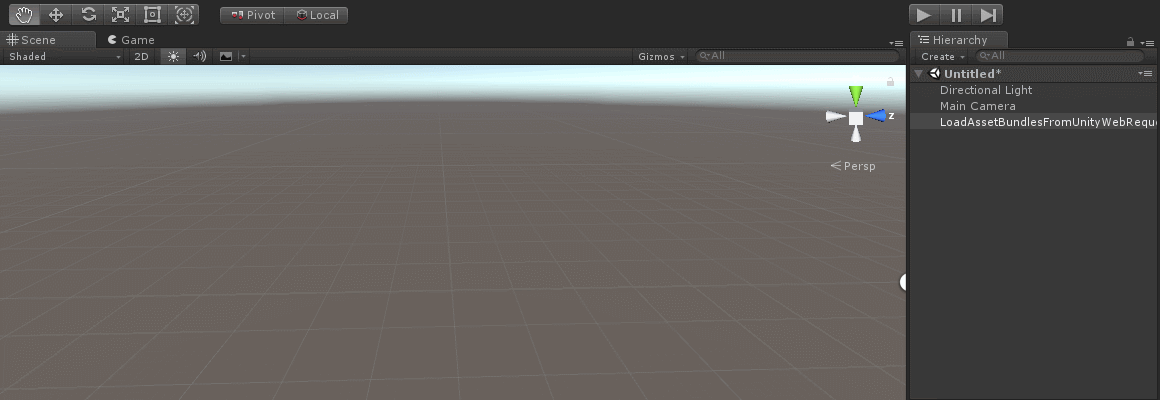 LoadAssetBundlesFromFile 스크립트를 빈 게임오브젝트에 추가 후 게임을 플레이합니다.