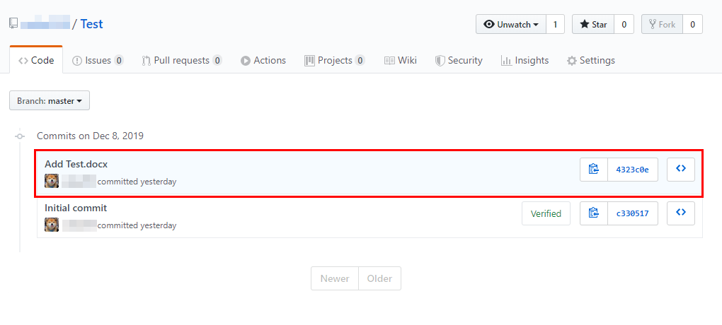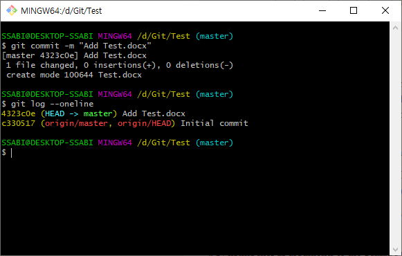 커밋 후 로그를 확인해보면 “Add Test.docx”가 커밋된 것을 확인할 수 있습니다.