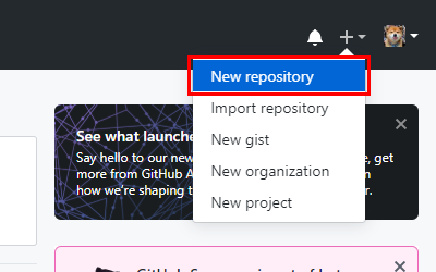 회원가입한 계정으로 깃허브에 로그인 한 후 우측 상단의 New repository를 클릭합니다.