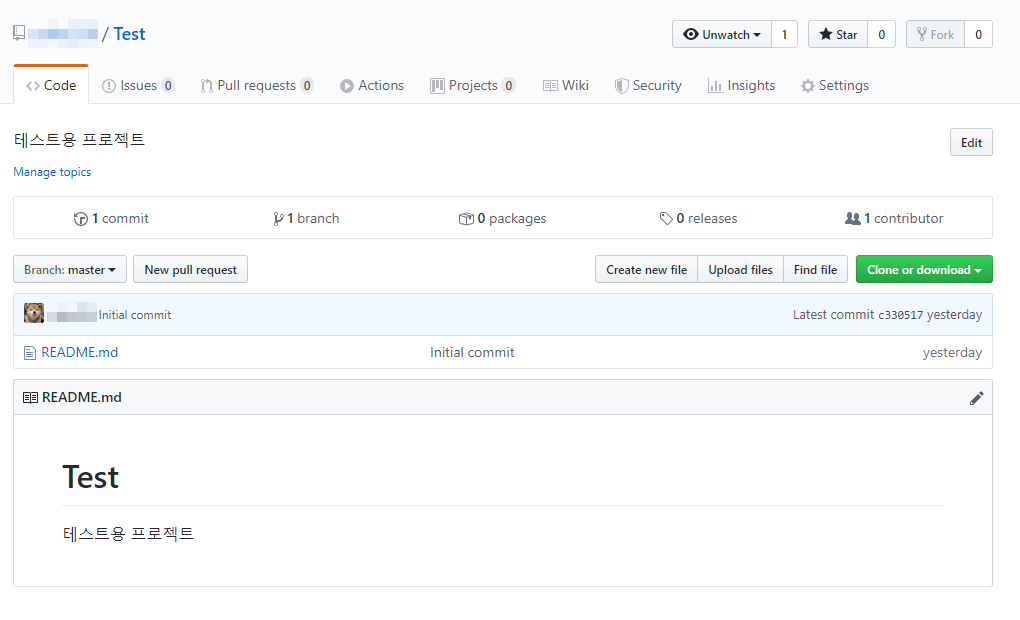깃허브에 Test 저장소가 생성되었습니다.