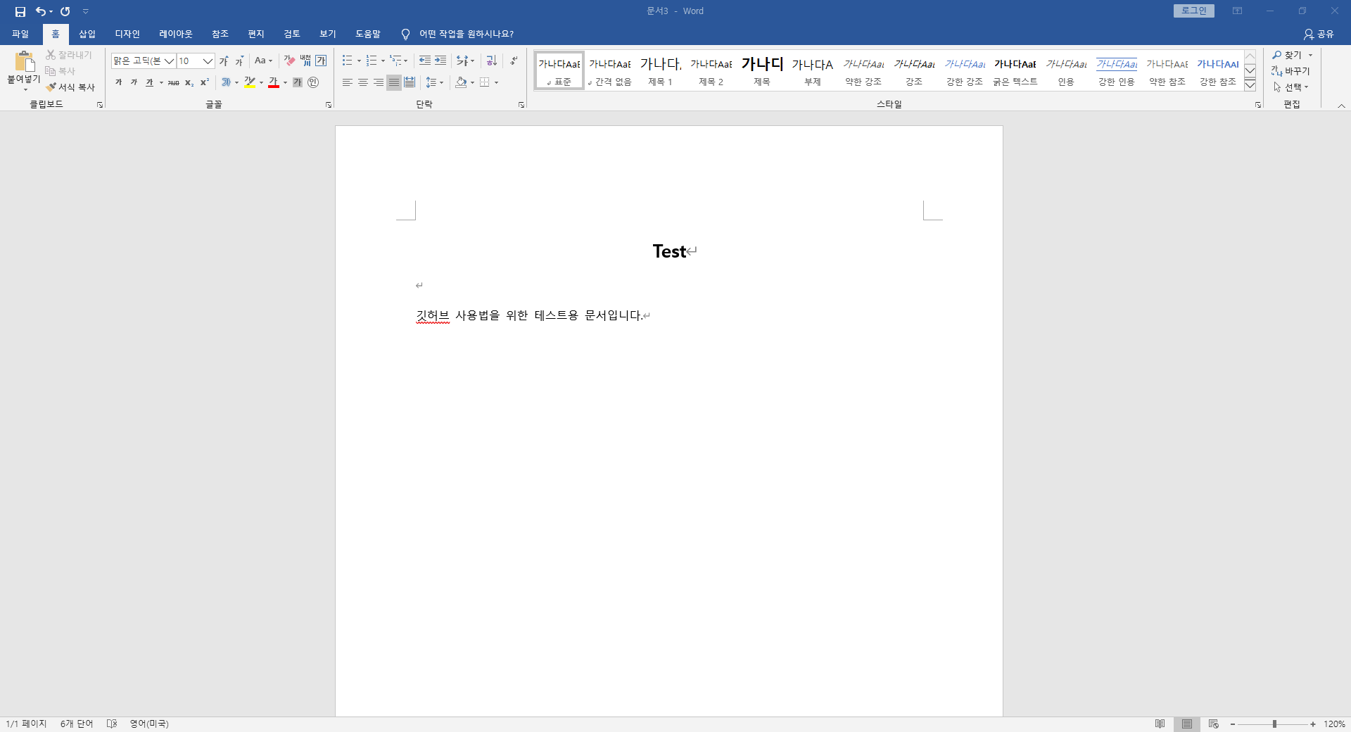 간단한 워드 파일을 추가해 보겠습니다. 먼저 워드를 실행한 후 내용을 작성하고 파일 이름을 Test로 한 후 로컬저장소에 저장합니다.