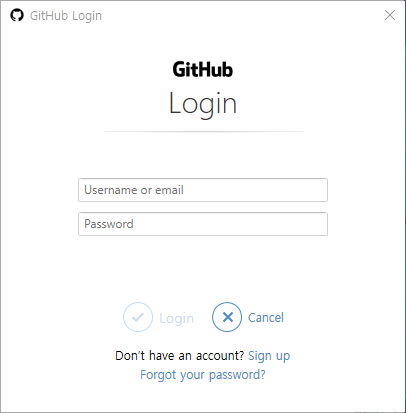 처음 푸시를 하는 경우라면 깃허브 로그인 창이 뜹니다. 회원가입한 계정으로 로그인 해줍니다.